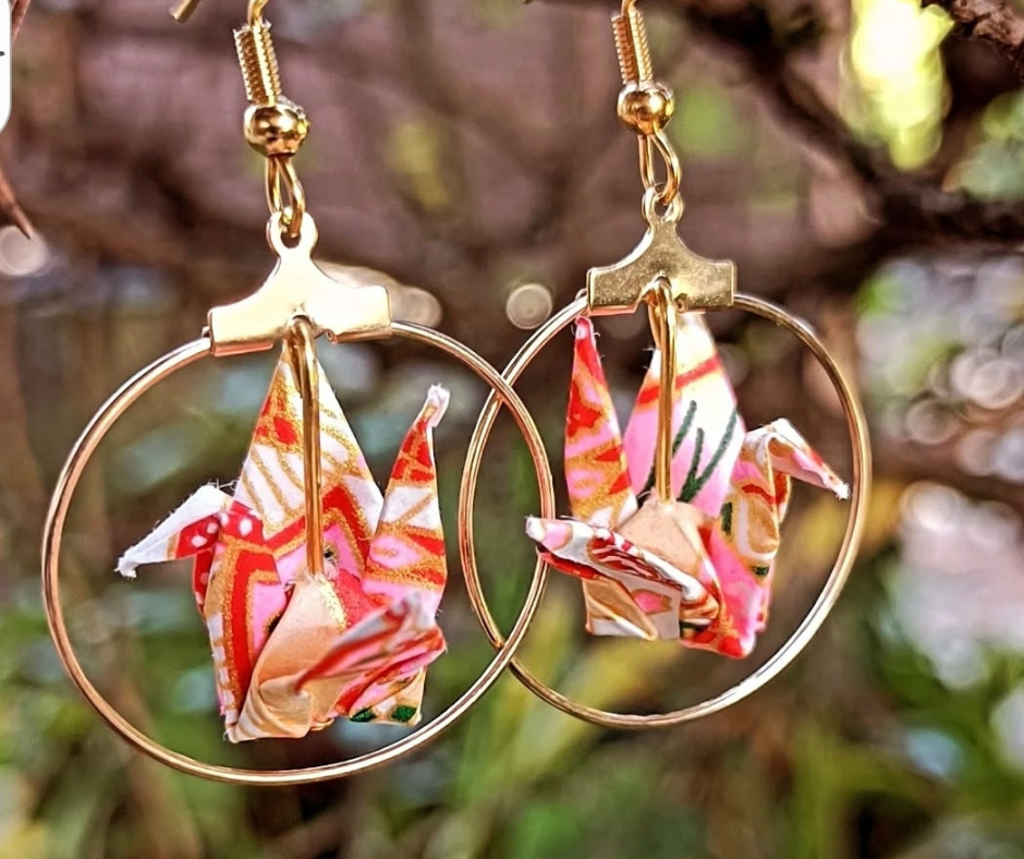 Ses boucles d’oreilles en origami, légères et pleines de poésie, sont au cœur de ses créations.
