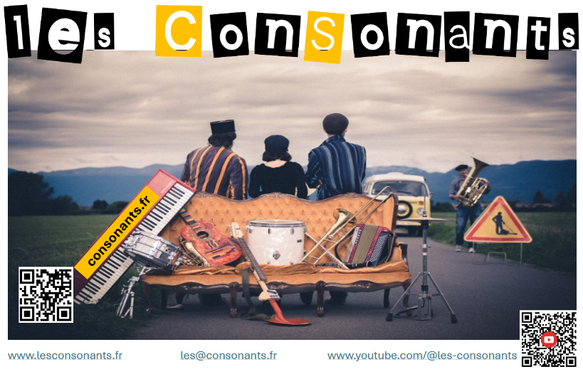 🎸 A 15h30, Yann et les ConSonants, un quatuor urticant à 20 instruments, coloré et rétro. Chansons réalistes et caustiques. Ils font battre les orteils et danser les idées ! Prenez humour et brodequins confortables pour plonger dans leur univers loufoque, tourbillon de jeux de mots et d’instruments peu orthodoxes.