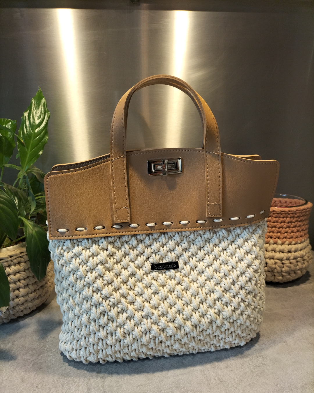 Sandra réalise des sacs au crochet, principalement à partir de matières naturelles et de cotons recyclés.